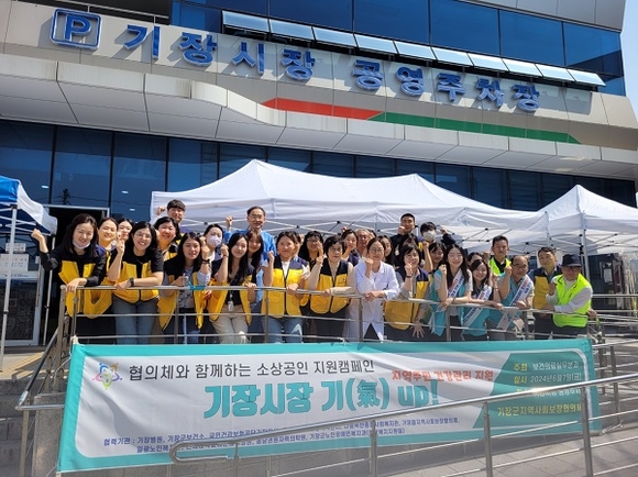 부산 기장군이 지난 7일 기장시장 공영주차장에서 지역사회보장협의체 보건의료실무분과와 함께 ‘기장시장 기(氣) up!’ 캠페인을 추진했다고 10일 밝혔다.