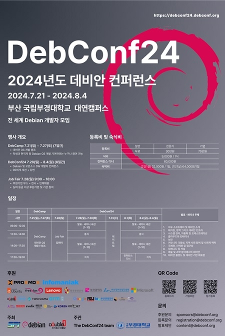 부산시가 오는 7월 21일부터 8월 4일 15일간 국립부경대학교 대연캠퍼스에서 '2024 데비안 컨퍼런스(DebConf24)'가 개최된다고 밝혔다.