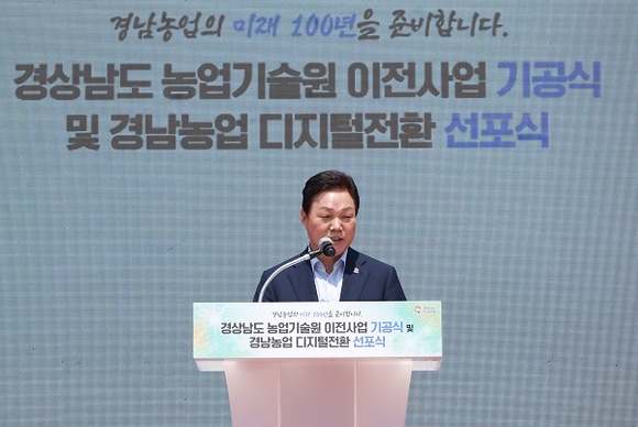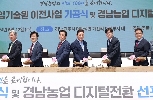 경남도는 12일 오전 진주시 이반성면 농업기술원 이전 예정부지에서 안전하고 성공적인 농업기술원 신청사 건립을 위한 기공식을 개최하고, 미래 첨단 농업으로의 디지털 전환을 위한 경남농업의 새로운 비전을 선포했다.
