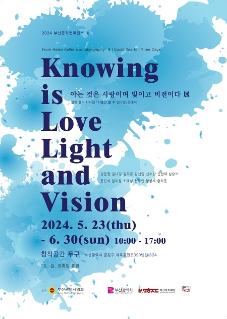 ‘2024 부산문화컨퍼런스 Ⅲ’의 일환이자 부산시의회의 후원을 받아 진행되는 <아는 것은 사랑이며 빛이고 비전이다> 展은 부산문화재단에서 운영하는 ‘창작공간 두구’와 ‘장예예술인 창작공간 온그루’에서 활동한 13명의 장애 예술가의 작품을 소개하고 작가들의 창작에 대한 열정을 널리 알리고자 기획됐다.
