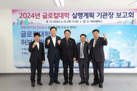 경남 김해시는 13일 아이스퀘어몰 소재 허브캠퍼스에서 글로컬대학 실행계획 기관장 보고회를 개최했다고 밝혔다.