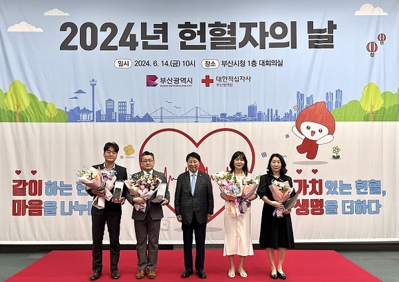 기장군도시관리공단이 14일 2024년 제1회 부산시 헌혈자의 날 행사에서 대한적십자로부터 부산지역 혈액 수급 안정화에 기여한 공로로 혈액사업 유공기관 표창 감사패를 수상했다.