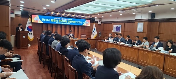 이날 보고회에서는 담당 부서별로 공약사업에서 수립된 정책목표와 구체적인 사업 추진 방안과 예상되는 쟁점 등에 대한 상세한 보고 후 부서 간 사업의 효율적 추진과 쟁점 해소를 위한 방안에 대해서도 논의했다.