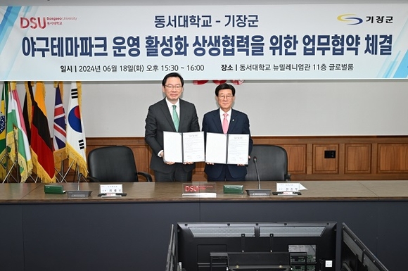 부산 기장군이 18일 동서대와 함께 야구테마파크 운영 활성화를 위한 업무협약을 체결했다고 밝혔다.