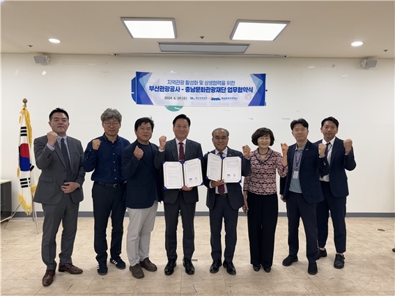 이정실 사장은 “이번 협약을 통해 양 지역의 국내외 관광객 유치 증대와 지역경제의 활성화가 이뤄지는 계기가 되기를 바란다”며 “부산과 충청남도의 관광 홍보마케팅 노하우와 정보 공유를 통해 지역 간 연계 관광산업 발전에 견인할 것”이라고 말했다.