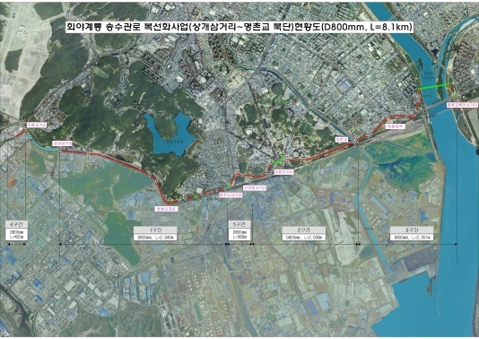 이 사업은 남구 상개삼거리에서 명촌교 북단까지 8.1㎞ 구간에 기존 송수관로 외에 800㎜ 송수관로 한 개 라인을 더 설치해 복선화함으로써 예기치 못한 누수사고 등에 대비하기 추진됐다.