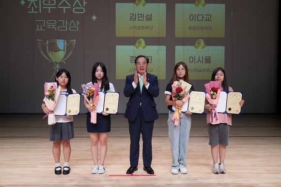 하윤수 부산시교육감이 20일 학생교육문화회관 대강당 및 교문갤러리에서 열린 ‘2024년 제1회 부산학생풍경그리기 축제 시상 및 작품 전시 개막식’에 참석해 학생들을 격려하고 작품들을 관람했다고 밝혔다.