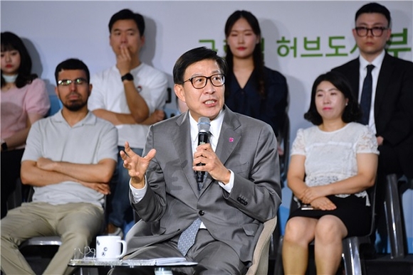 부산시가 26일 부산현대미술관에서 '부산 글로벌 허브도시의 미래'를 주제로 시민행복 토크콘서트를 개최했다고 밝혔다.