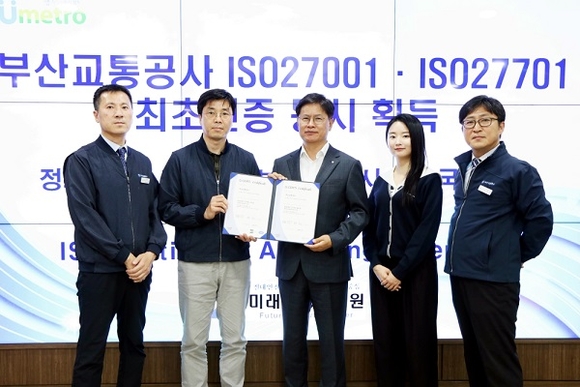 부산교통공사가 시민의 개인정보 및 주요 업무정보 등 디지털 자산이 안전하게 신뢰성을 갖추고 관리되도록 글로벌 수준의 정보보안 및 개인정보보호 관리체계 인증(ISO27001·ISO27701)을 동시에 획득했다고 1일 밝혔다.