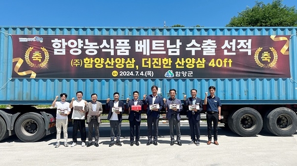 경남 함양군은 4일 안의면에 위치한 ㈜함양산양삼에서 조여문 부군수를 비롯한 수출 관계자 15명이 참석한 가운데 산양삼가공품을 베트남에 수출하는 선적식을 가졌다.
