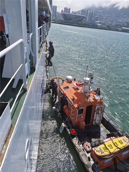이날 훈련은 부산 생도 남동방 7해리 부근 해상에서 일본으로 항해하던 행복호(국제여객선 모의선박)와 부산항으로 입항하던 화물호(유해물질운반선 모의선박)가 충돌한 상황을 가정해 신고접수, 상황전파, 인명구조, 선체구조, 해양오염 방제 등의 순으로 진행됐다.
