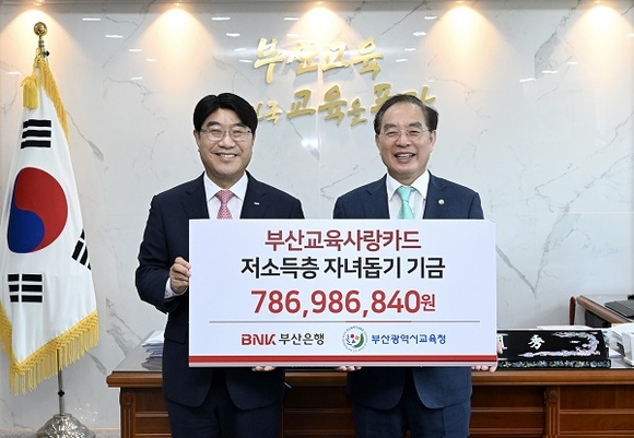 BNK부산은행이 5일 부산시교육청에서 ‘저소득 가정 자녀 돕기 기금’ 7억8600여만 원을 전달했다고 밝혔다.