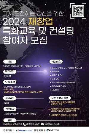중소벤처기업진흥공단(중진공)은 재창업자의 역량 강화와 사업화 성공률을 제고하기 위한 ‘2024 재창업 특화교육 및 컨설팅 프로그램’ 참여자를 모집한다고 8일 밝혔다.