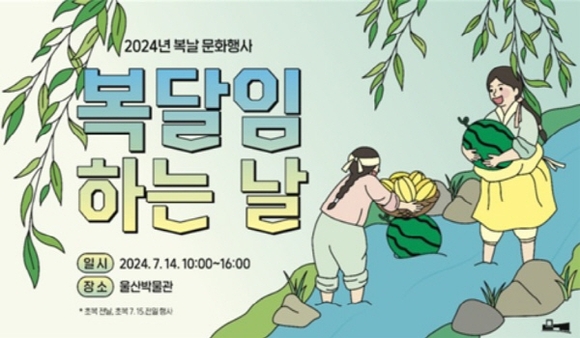 울산박물관은 7월 14일 박물관 일원에서 ‘복달임 하는 날’이라는 주제로 ‘2024년 복날 문화행사’를 운영한다고 8일 밝혔다.