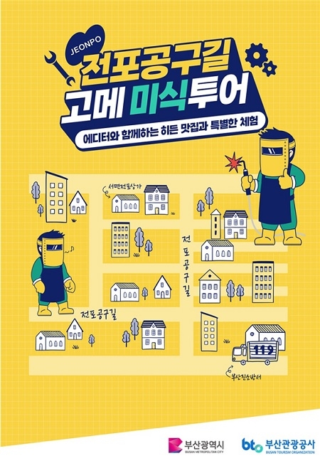 부산관광공사가 7월부터 11월까지 전포공구길에서 미식투어와 스냅샷투어를 개발해 운영한다고 밝혔다. 이는 부산 골목길 관광자원화 사업의 일환으로 전포공구길 홍보와 상권의 활성화를 위해 추진되는 사업이다.