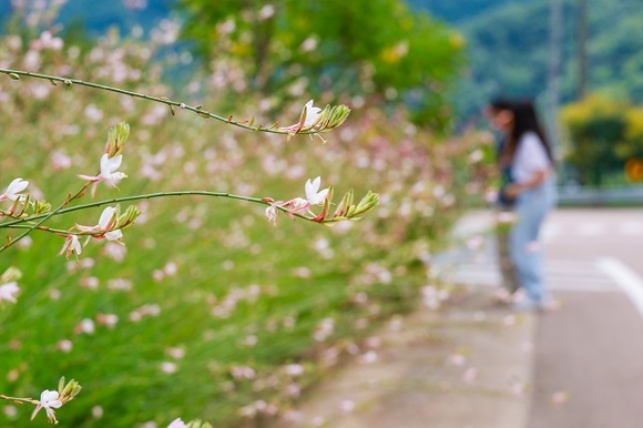 9일 경남 산청군 삼장면 국도 59호선 도로변에 꽃 모양이 나비가 앉은 모습과 닮아 나비바늘꽃이라고도 불리는 가우라꽃이 만개해 눈길을 끌고 있다. (사진=산청군 제공)