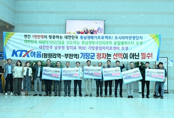 한편 기장군은 지난 2022년에 KTX-이음 정차역 유치 타당성조사용역을 이미 완료하고 2023년에 범군민 14만 1천명 유치 서명부를 국토교통부에 직접 전달하는 등 KTX-이음 정차역 유치를 위해 전 군민이 유치활동에 나서고 있다.