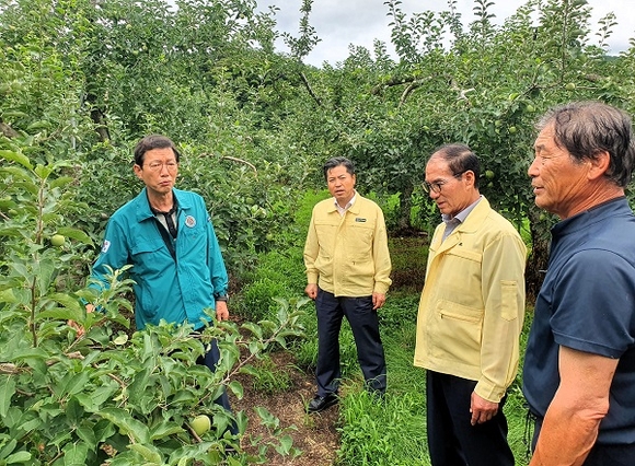 경남농협은 지난 10일 거창군 남상면 관내 과수농가를 방문해 집중호우에 대비 농업 시설물 및 농작물에 대한 현장점검을 실시했다고 밝혔다.