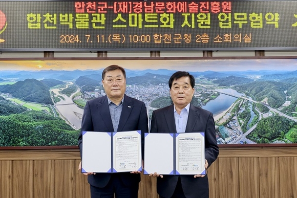 경남 합천군은 11일 오전 군청 소회의실에서 경남문화예술진흥원과 합천박물관 스마트화 지원을 위한 업무협약을 맺고, 경남 지역특화 콘텐츠 개발지원사업을 통한 스마트 합천박물관 조성에 본격 착수했다.