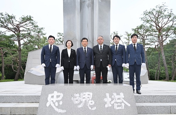 제9대 진주시의회 후반기 신임 의장단이 후반기 의정활동의 첫 공식 일정으로 11일 임진대첩계사순의단과 충혼탑을 참배했다.