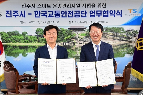 경남 진주시는 12일 시청 기업인의 방에서 안전한 시내버스 운행을 위해 한국교통안전공단과 업무협약을 체결하고, '진주시 스마트 운송관리지원사업'을 상호 협력해 진행하기로 했다.