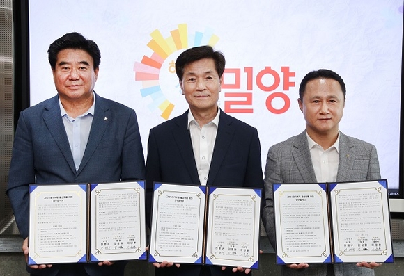 경남 밀양시는 지난 12일 시청 시장실에서 농협 밀양시조합운영협의회, 농협 밀양시지부와 고향사랑기부제 활성화를 위한 업무협약을 체결했다.
