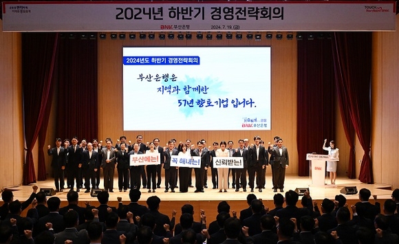 BNK부산은행이 지난 19일 본점 대강당에서 경영진 및 부실점장 등 340여 명이 참석한 가운데 ‘2024년 하반기 경영전략회의’를 개최했다고 밝혔다.