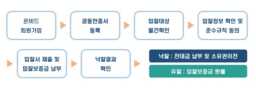 입찰은 온비드 또는 스마트온비드 앱을 통해 시간과 장소에 제약 없이 편리하게 참여가 가능하며 입찰 진행 현황, 입찰 결과 등 전 과정이 투명하게 공개된다.