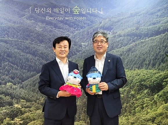 조규일 진주시장이 23일 정부대전청사를 방문해 임상섭 산림청장을 면담하고 '2025 대한민국 정원산업박람회' 진주시 유치, '정원문화도시' 추진 등 현안사업을 건의했다.