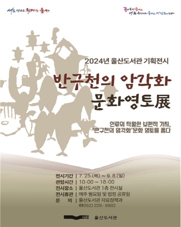 울산도서관은 25일부터 9월 8일까지 1층 전시실에서 ‘반구천의 암각화, 문화영토전(展)’을 개최한다고 밝혔다.
