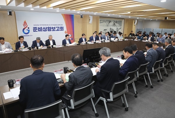 이날 보고회는 박완수 도지사를 비롯한 경남도청 전 실·국장, 경남교육청, 경남경찰청, 체육회, 김해시 관계자 등 30여 명이 참석했다. 전국체전기획단의 총괄 준비사항 보고에 이어 각 기관별 준비사항을 공유함으로써 성공적인 체전을 위한 다짐과 함께 2개월 앞으로 다가온 전국체전의 진행계획을 상호 점검했다.