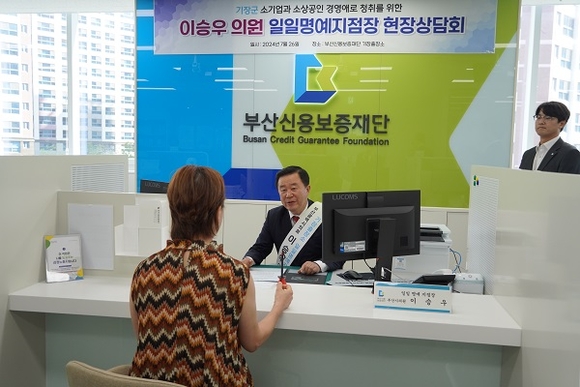 이승우 의원은 이날 성동화 이사장으로부터 명예지점장 위촉장을 전달받은 후 보증신청을 위해 기장출장소를 방문한 관내 소상공인 기업 대표들을 맞이하며 보증상담을 진행하고 고금리로 어려움을 겪고 있는 현장의 소리를 직접 들었다.