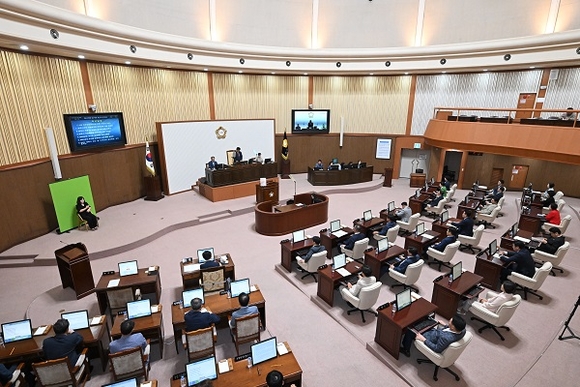 진주시의회가 29일 제258회 임시회 제2차 본회의를 열고 추가경정예산안 심의를 포함해 12일간 이어진 의사 일정을 모두 마무리했다. 이달 초 제9대 후반기 의회가 원 구성을 마친 뒤 첫 회기였다.
