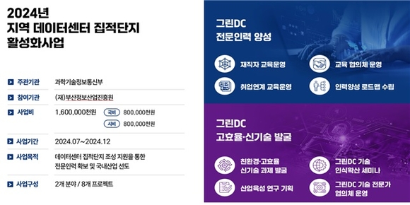 부산시와 부산정보산업진흥원은 과학기술정보통신부의 공모사업인 ‘24년 친환경 그린 등 데이터센터 산업 활성화 사업’에 최종 선정됐다고 밝혔다.
