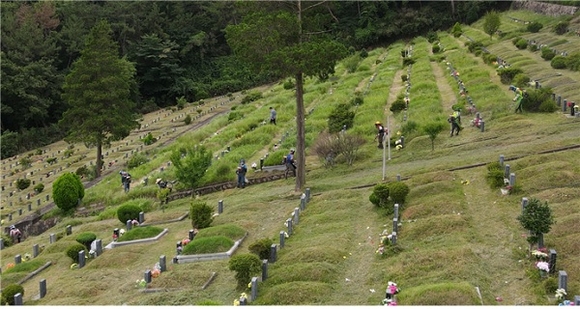 부산의 대표 공설장사시설인 영락공원 묘원이 대대적인 벌초 작업에 들어간다.