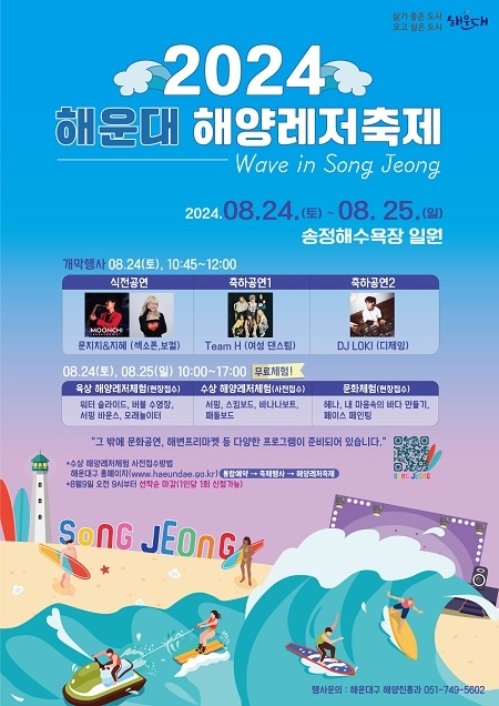 부산 해운대구가 오는 24일과 25일 양일간 대한민국 서핑 명소인 송정해수욕장 백사장에서 ‘2024 해운대 해양레저축제’를 개최한다고 밝혔다.