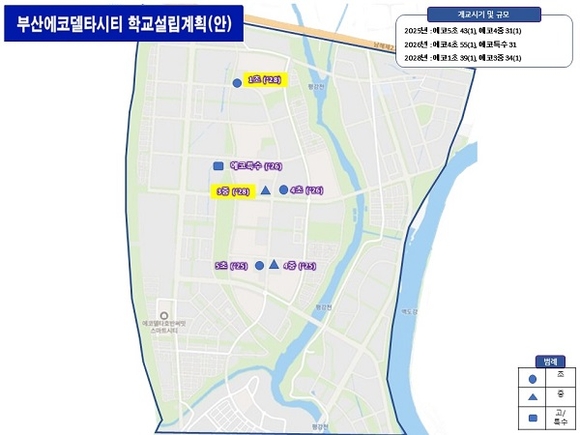 시교육청은 에코델타시티 내 학생 수 증가와 교육 여건 개선을 위해 초등학교와 중학교 설립을 꾸준히 추진해왔다. 이번 중앙투자심사 결과에 따라 (가칭) 에코1초는 1만4040㎡ 부지에 39학급(특수 1학급 포함) 규모로, (가칭) 에코3중은 1만3890㎡ 부지에 34학급(특수 1학급 포함) 규모로 2028년 3월 개교할 예정이다.