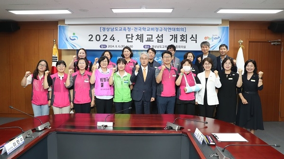 경남도교육청과 전국학교비정규직연대회의는 6일 오전 중회의실에서 '2024년 단체교섭 개회식'을 열었다.