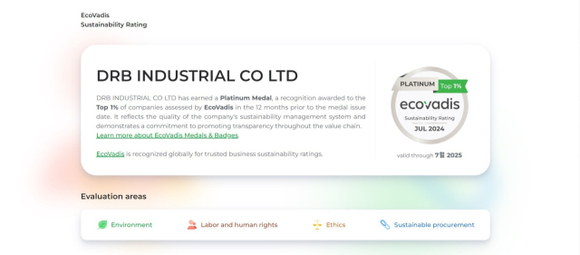 동일고무벨트는 에코바디스 공급망 실사 평가 전 분야에서 우수한 점수를 획득, 해당 산업분야 상위 1%에 해당하는 플래티넘 메달을 획득했다.