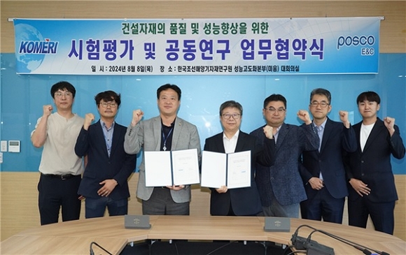 한국조선해양기자재연구원(KOMERI)이 포스코이앤씨와 공동주택의 건설자재 품질 향상을 위한 기술협력 업무협약을 체결했다고 8일 밝혔다.