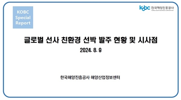 한국해양진흥공사가 9일 '글로벌 선사 친환경 선박 발주 현황 및 시사점' 특집보고서를 발간했다고 밝혔다.