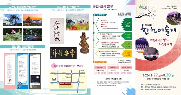 한국예총합천지회가 주최하고, 국악, 문인, 음악, 미술, 사진작가 협회가 주관하는 이번 행사는 '예술은 꿈! 합천, 그 꿈을 꾸다'라는 주제로 진행된다. 전시 행사는 문인협회의 공원시화전과 미술 및 사진작가 협회의 회원전으로 구성, 다양한 예술작품이 준비돼 있다.