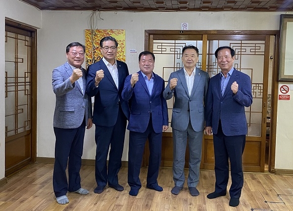 경남 서부 지역의 4개 군(산청군·함양군·거창군·합천군) 군수와 지역구 신성범 국회의원은 지난 18일 오후 합천군 관내 식당에서 모임을 갖고 4개 군 행정협의회를 가졌다.