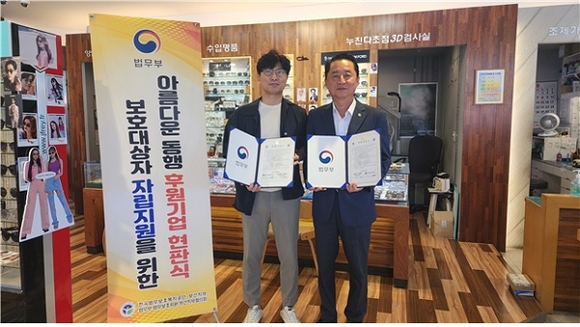 제56호 후원기업으로 선정된 ‘1001안경 연산로터리점’ 강호영 대표는 “업무협약에 이어 법무보호대상자를 도울 수 있어서 기쁘다”며 “법무보호사업을 적극적으로 홍보하고 참여를 유도해 안전한 지역사회를 만들 수 있도록 노력하겠다”고 소감을 전했다.