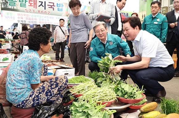 박완수 경남도지사가 의령전통시장을 찾아 상인들과 소통의 시간을 갖고 있다. (사진=경남도 제공)