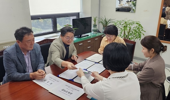홍태용 김해시장과 안선환 시의장이 지난 23일 국가유산청을 방문해 관계자에게 가야고분군 세계유산 통합관리기구 김해 설치 공동건의문과 입장문을 전달하고 있다. (사진=김해시 제공)