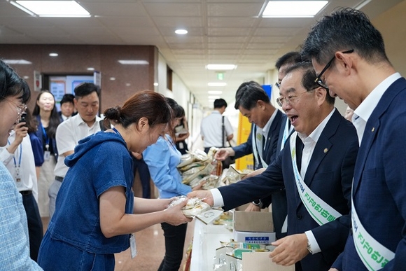 하 교육감과 정 본부장은 협약 체결 전 시교육청 1층 로비에서 직원들을 대상으로 ‘아침밥 먹기 운동’ 캠페인도 펼쳤다.