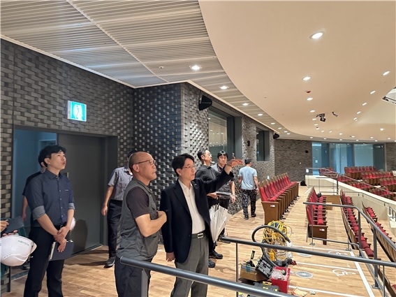 금주 공사 준공검사가 예정된 만큼 김용학 사장은 지난 2일 다시 현장을 방문해 실내외 시설을 직접 둘러보고 ▲콘서트홀 외관 및 경관조명 ▲소방시설 포함한 각종 설비 시운전 상태 ▲방재실 cctv 운영 상황 ▲공연장 청소 상태 ▲외부 조경공간의 폭염에 따른 수목 고사 현황을 점검했다.