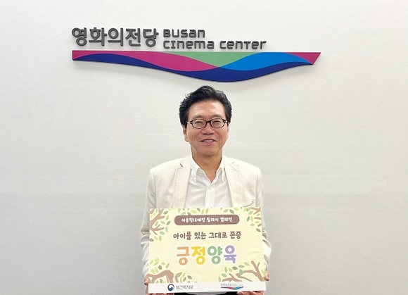 영화의전당 김진해 대표이사가 3일 아동학대 예방과 아동 존중 문화 확산을 위한 아동학대예방 릴레이 캠페인 ‘아이를 있는 그대로 존중, 긍정양육’에 동참했다.