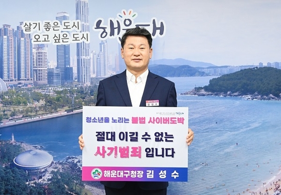 김성수 해운대구청장이 청소년 불법 사이버 도박 근절을 위한 릴레이 챌린지에 동참했다. 이 챌린지는 최근 급증하는 청소년 사이의 불법 사이버 도박 문제를 해결하고 도박의 위험성을 알리기 위해 시작됐다.